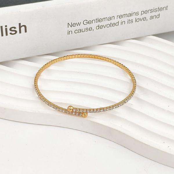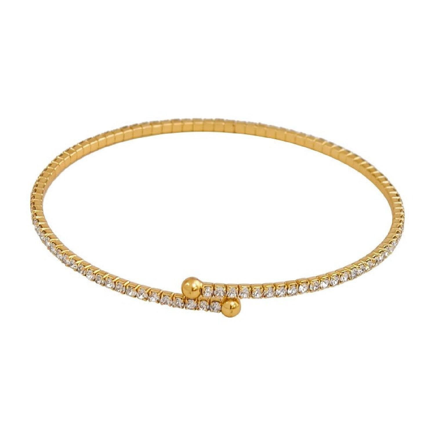 A novíssima braçadeira aberta ajustável é completamente cravejada de strass.