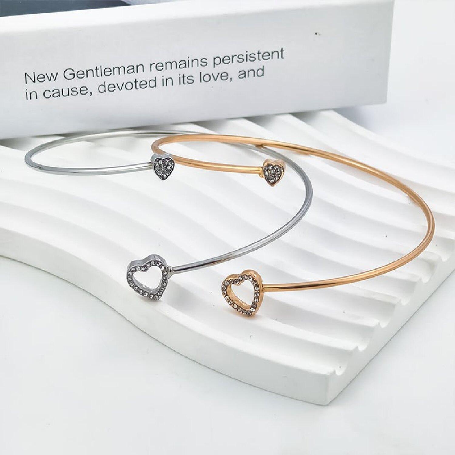 Nova braçadeira ajustável com abertura e design completo de coração em forma de diamante.