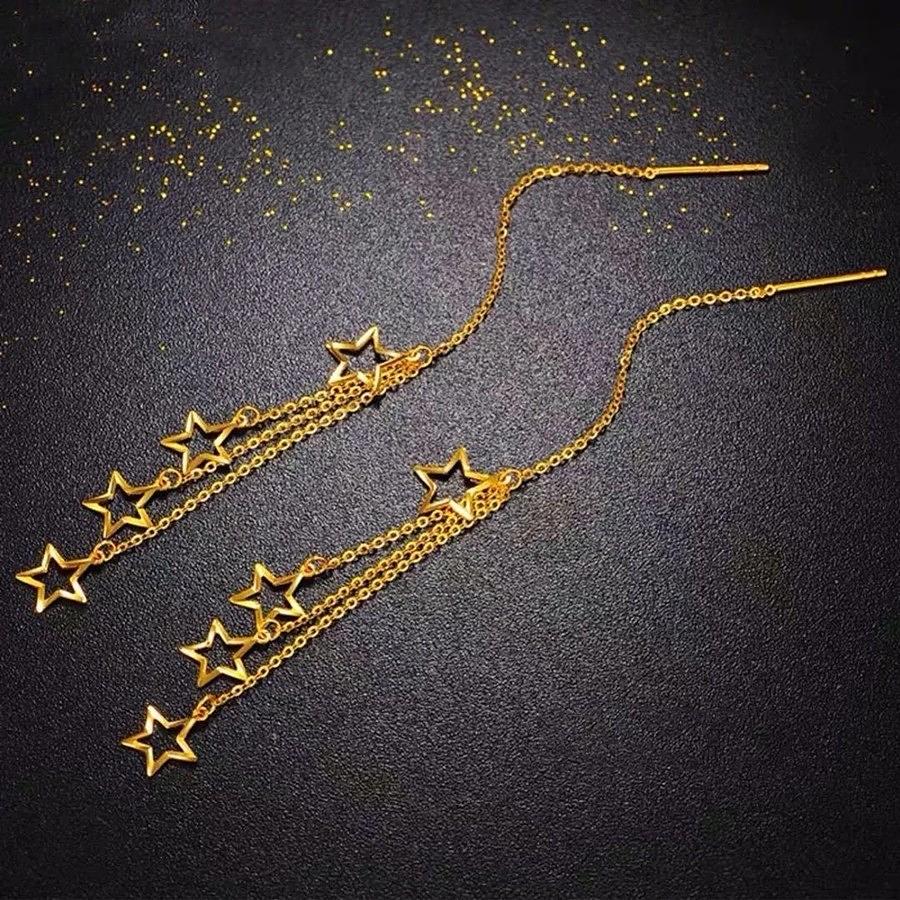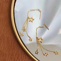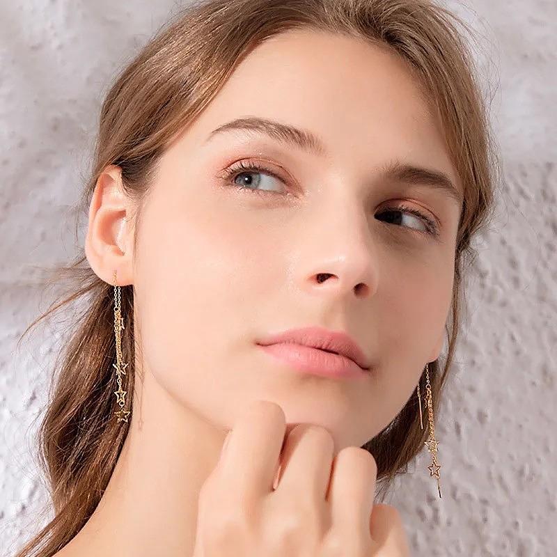 Novos brincos de estrela francesa em aço inoxidável 18K, brincos longos com franjas para mulheres.