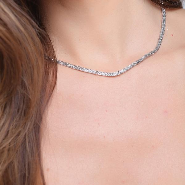 Colar de bambu de nicho retrô com corrente de malha de metal redonda em aço titânio 18K,40+5CM