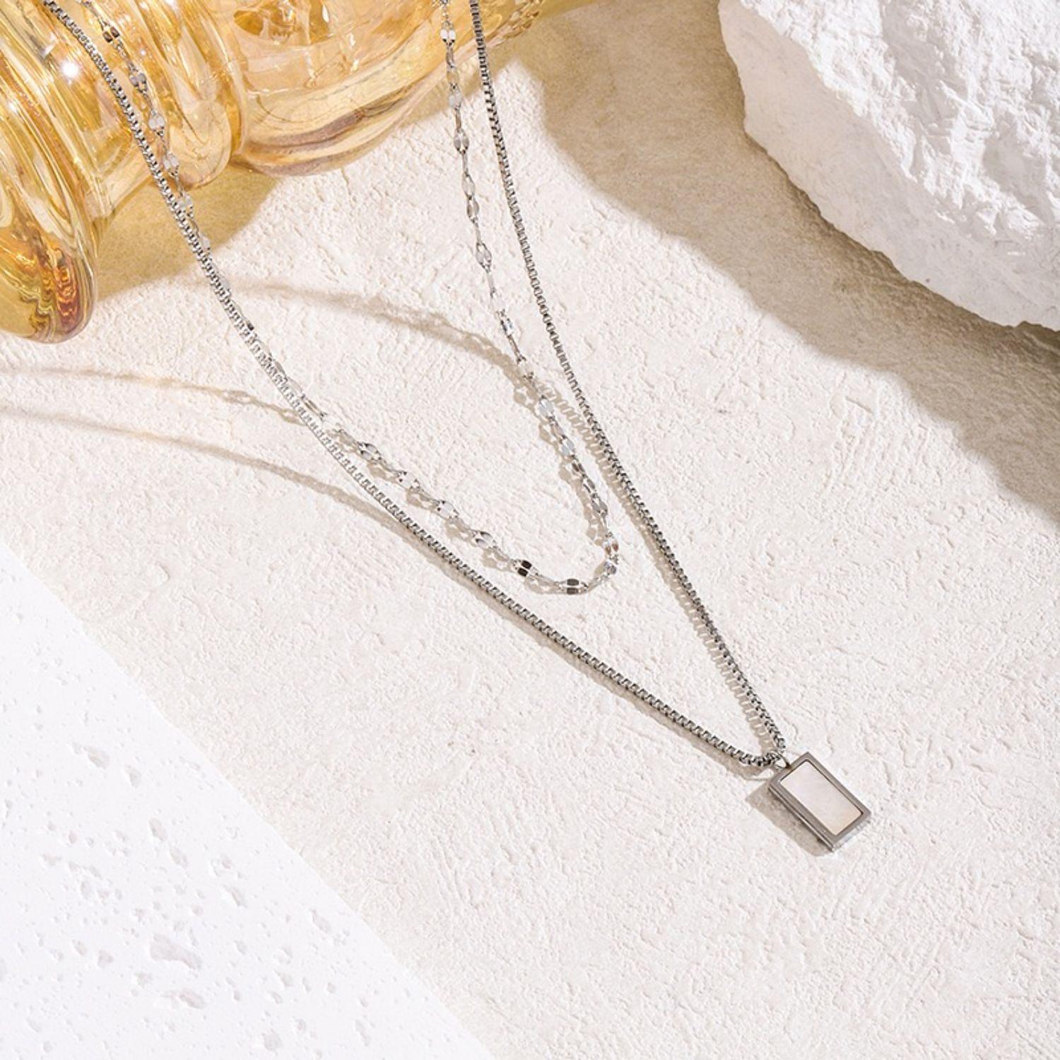 Corrente de clavícula empiahada quadrada geométrica de aço titânio 18K em madrepérola branca