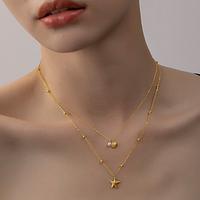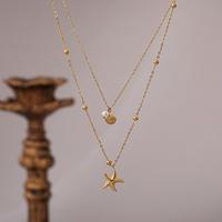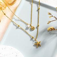 Colar feminino com corrente de clavícula em aço inoxidável 18K de dupla camada com pingente de estrela-do-mar, estilo férias de verão, para mulheres, em tons europeus e americanos.