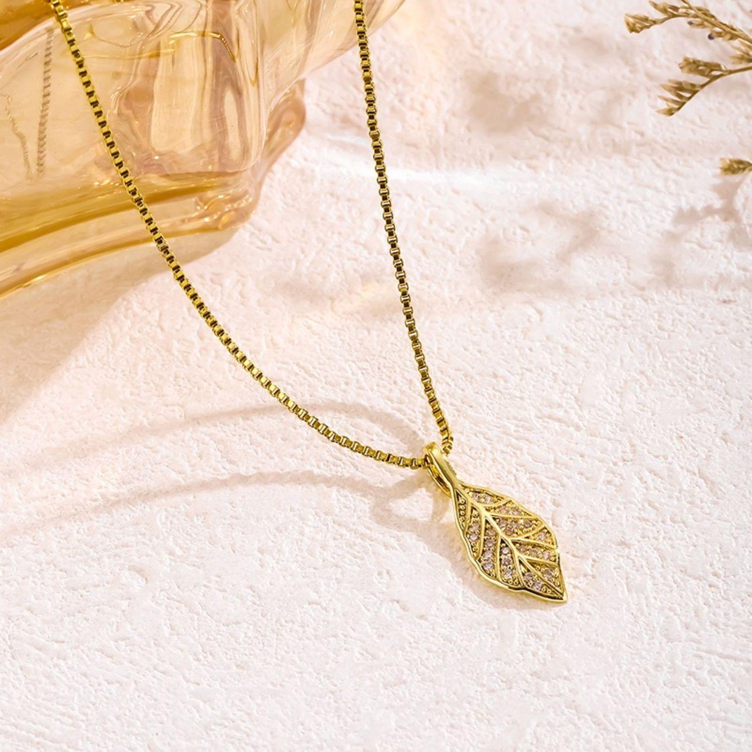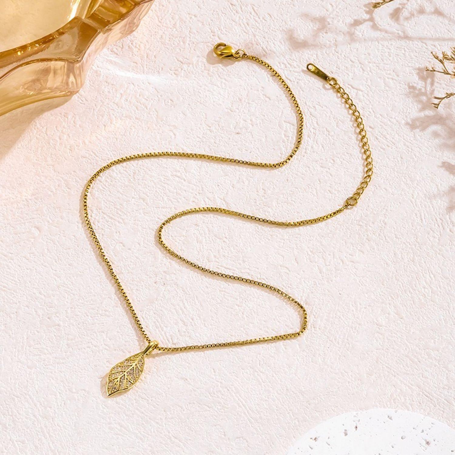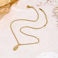 Novo design exclusivo, colar feminino em aço titânio 18K com folha de ouro e jade, pingente de folha moderno e versátil para usar no colo.
