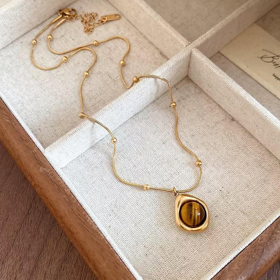 Novo colar feminino com pingente de olho de tigre Maillard em aço inoxidável 18K, resistente ao desbotamento, luxuoso, exclusivo, retrô e sofisticado.