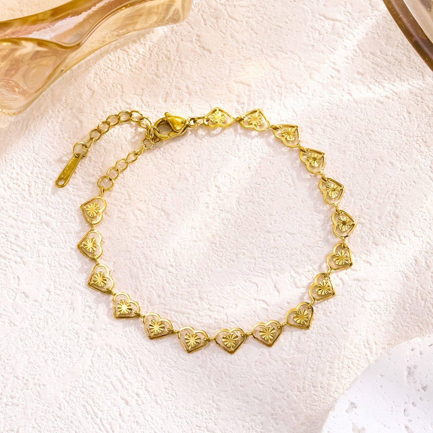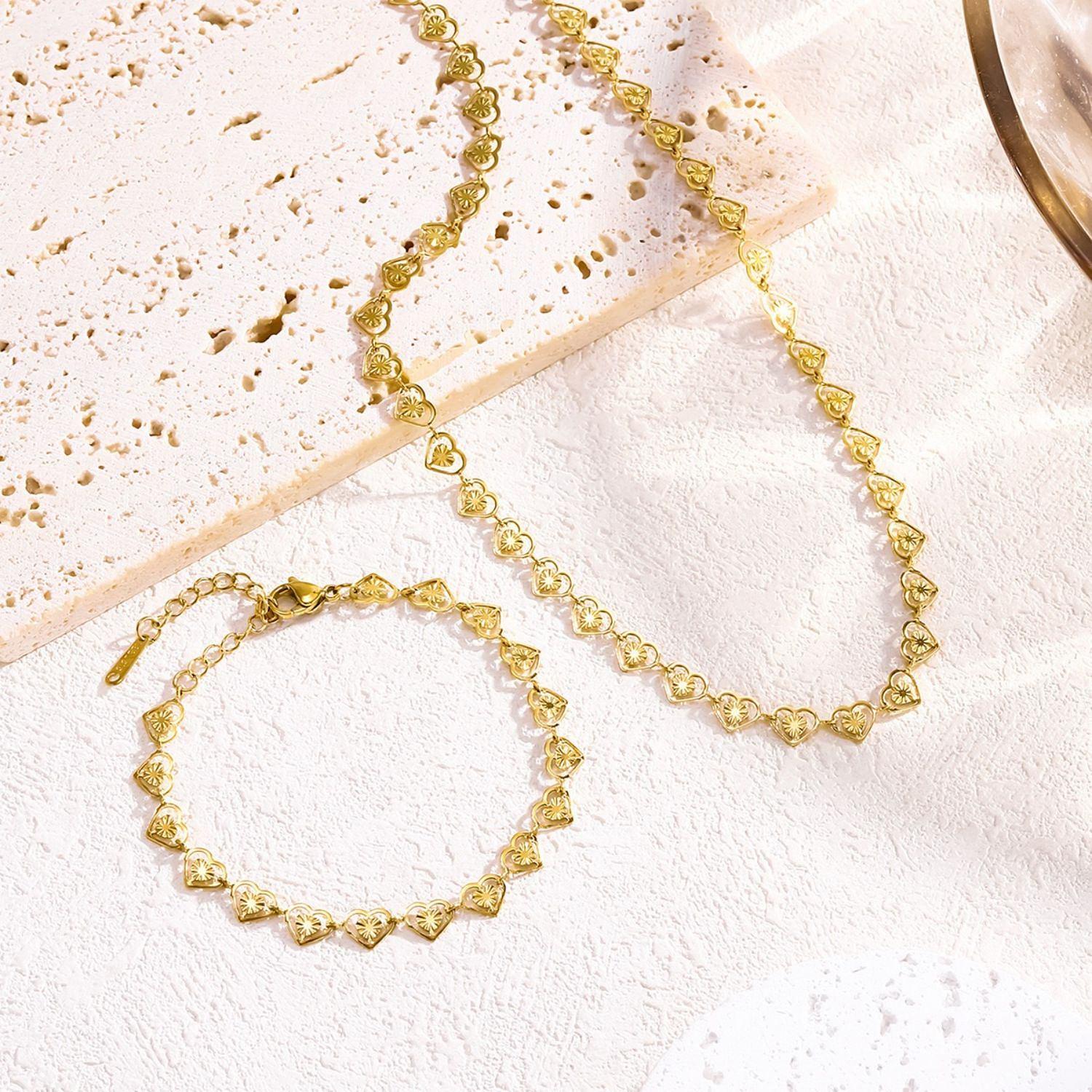 Novo conjunto de colar e pulseira em aço inoxidável 18K com estampa de coração em estilo japonês e coreano, design elegante e luxuoso.