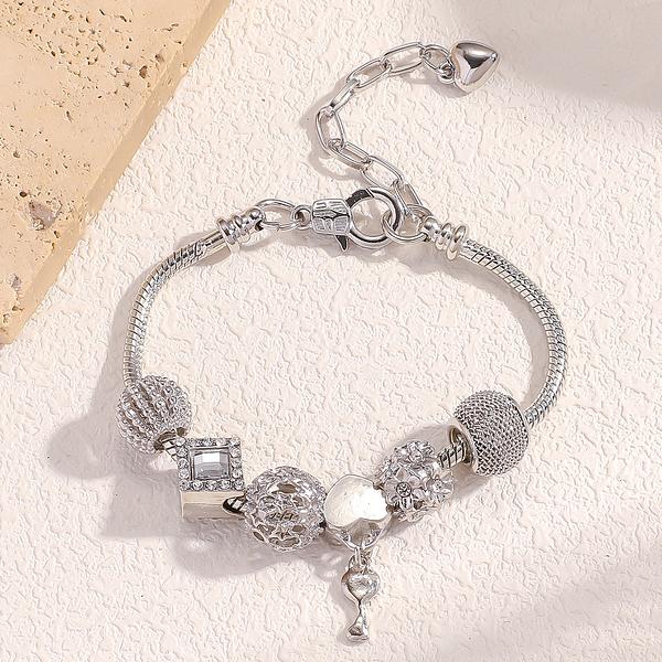 Esta nova pulseira é feita de aço inoxidável e apresenta detalhes incrustados. É elegante, casual e única.