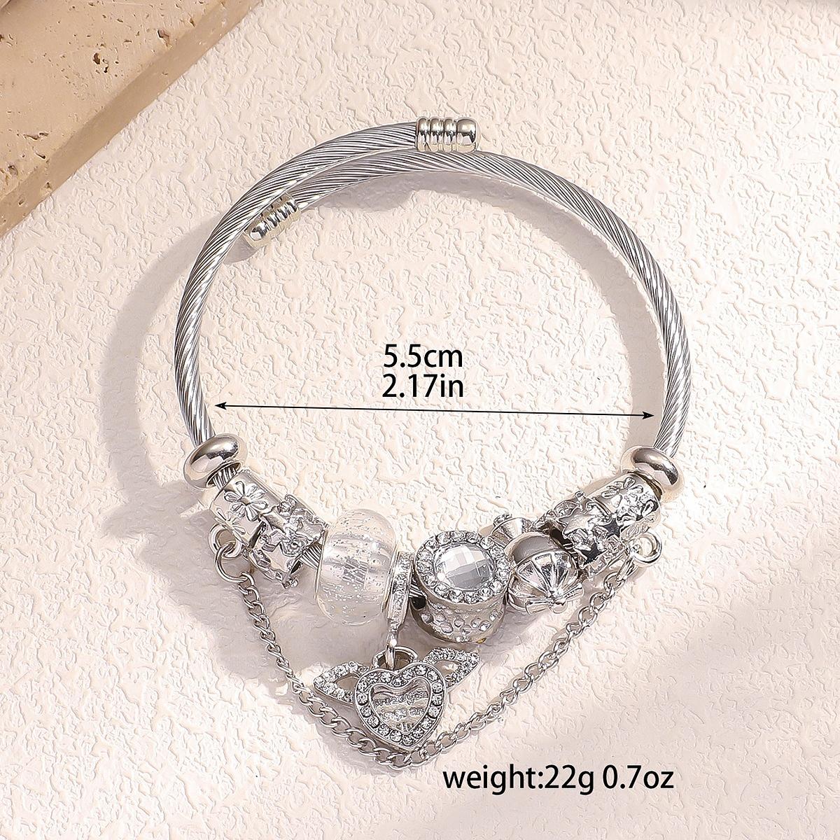 Esta nova pulseira é feita de aço inoxidável e apresenta detalhes incrustados. É elegante, casual e única.