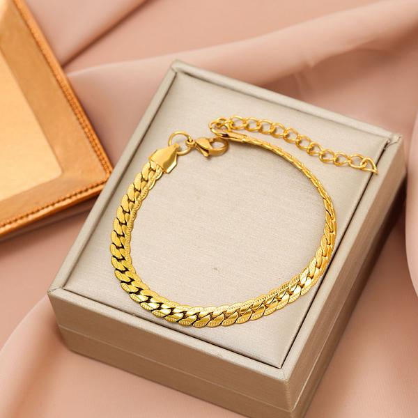 Pulseira cubana em aço titânio 18K, versátil e moderna para casais de hip-hop,17+5cm